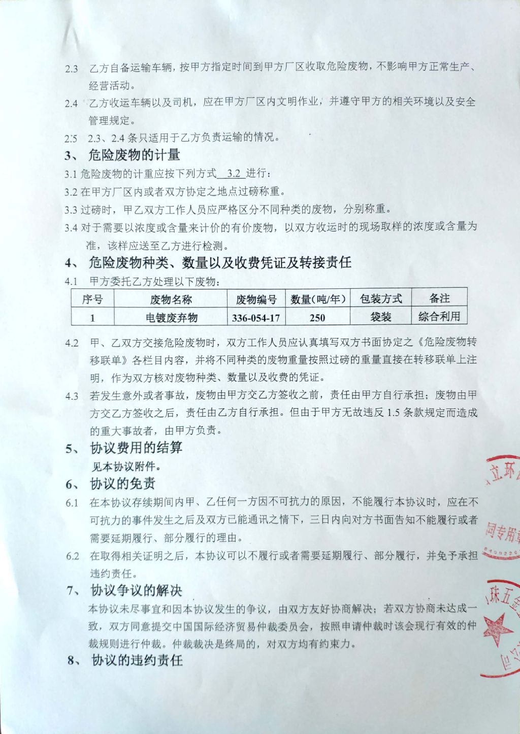 危险废物转移联单