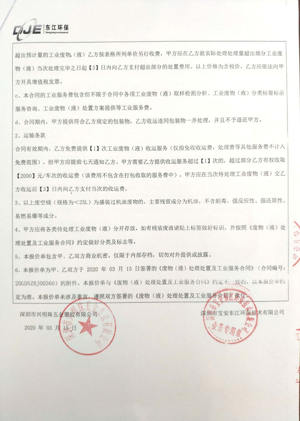 危险废物转移联单