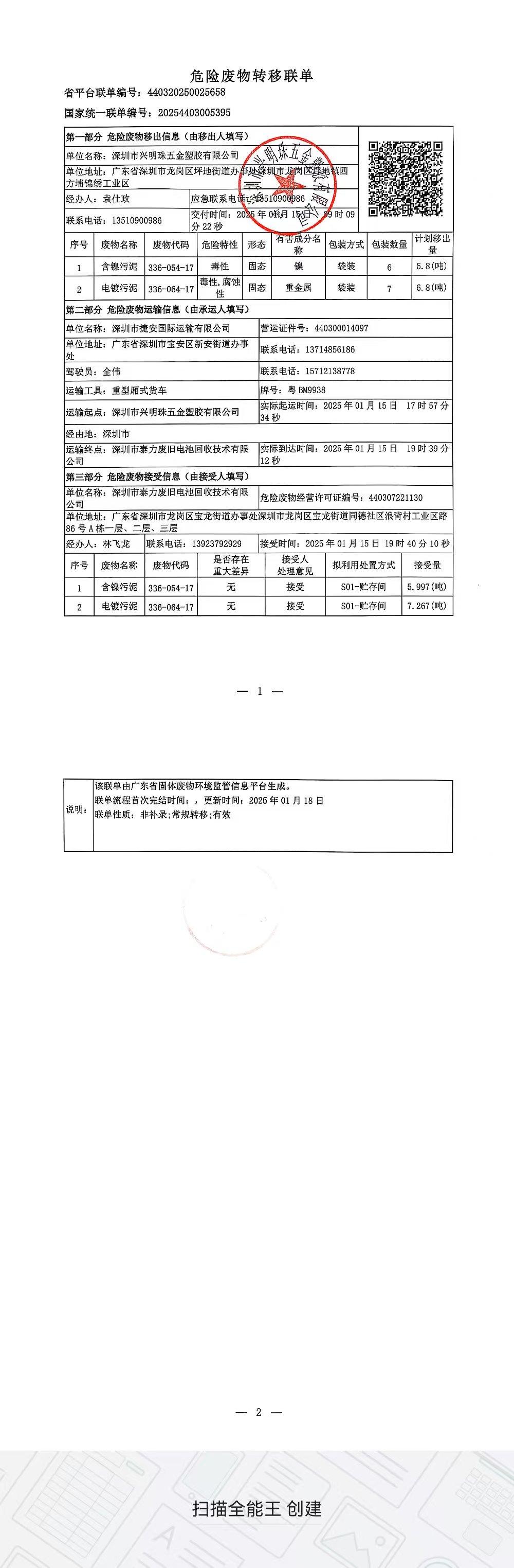 危险废物转移联单